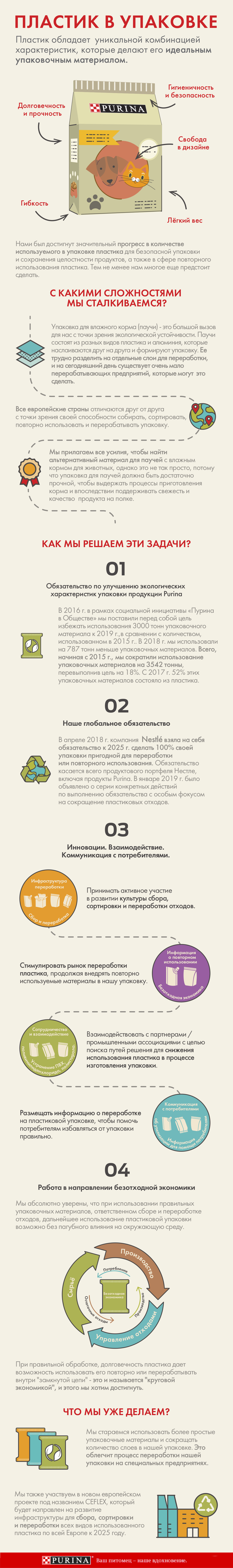 Мы много работаем над тем, чтобы достичь этой цели. Пластиковая упаковка важна для безопасной транспортировки нашей продукции и её доставки потребителям, она также снижает риск утраты и порчи продукта. Такая упаковка сочетает в себе уникальные характеристики: она надолго сохраняет свежесть корма, мало весит и удобна для потребителей. Поэтому, продолжая работать над сокращением количества пластика в составе нашей упаковки, мы тщательно изучаем возможности альтернативных вариантов его замены. Мы считаем, что при правильном подходе к сбору и переработке пластика, можно избежать нанесения ущерба окружающей среде.